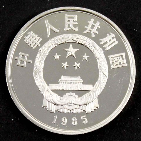 Kina, 5 Yuan 1985 sølv (.900), 22.22 gr. diameter 36 mm.