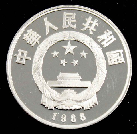 Kina, 5 Yuan 1986 sølv (.900), 22.22 gr., diameter 36 mm.