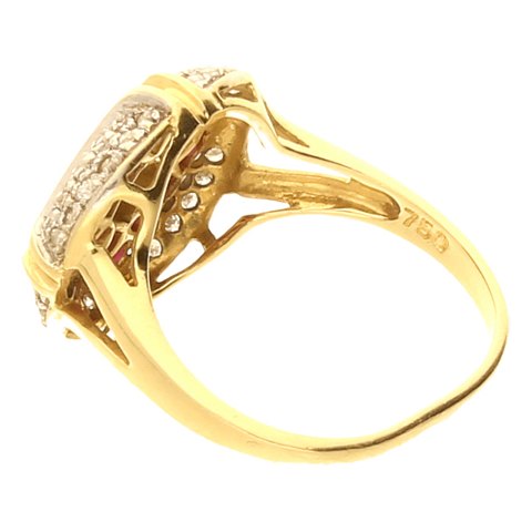 Ring af 18 kt. guld, prydet med rubiner og små brillanter.