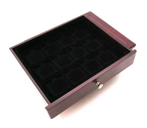 Skuffekassette af træimitat med enkelt bakke til opbevaring af Mønter op til 50 mm. i diameter. Kassette 28 x 25 x 7 cm.