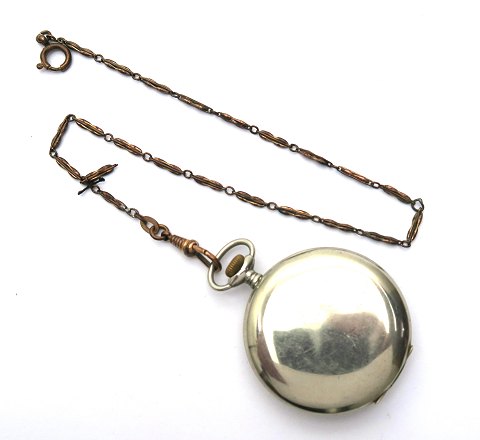 Tacy Mysteria herrelommeur af blankpoleret metal med urkæde