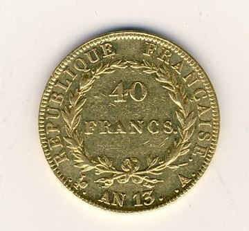 Frankrig, Napoleon, 40 francs GULD An 13 (1805)