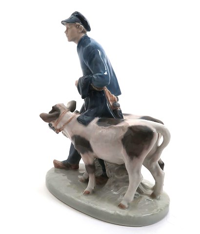 Royal Copenhagen underglasur figur i form af dreng med t kalve, designet af Christian Thomsen. 1. sortering. H. 24 cm.