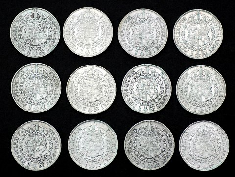 Sverige, Gustav V, 1 kr. 1928 ~ 1941 sølv (12)