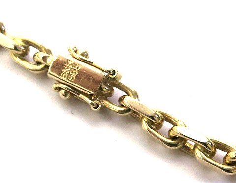 Massiv anker halskæde af 14 kt. guld med 4 x 7 mm. led, L. 53 cm., vægt ca. 38 gr.