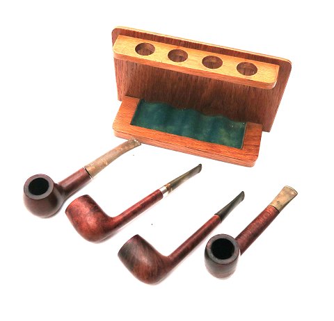 Pibeholder af lakeret bøgetræ med 4 tobakspiber