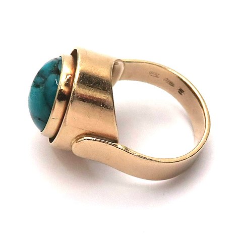 Ring af 14 kt. guld, prydet med cabochonsleben turkis