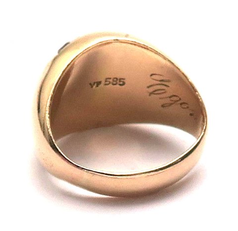 Ring af 14 kt. guld, prydet med facetslebne, klare safirer. Ring Str. 43, samlet vægt ca. 7 gr.