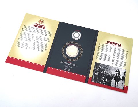 Mappe med guldmedalje og forgyldt medalje *Danmarks befrielse*. Guldmedaljen er af 18 kt. guld, vægt 4,8 gr., diameter 18 mm. Den store medalje af forgyldt kobbernikkel vejer 25 gr., dimeter 40 mm. Certifikat medfølger.