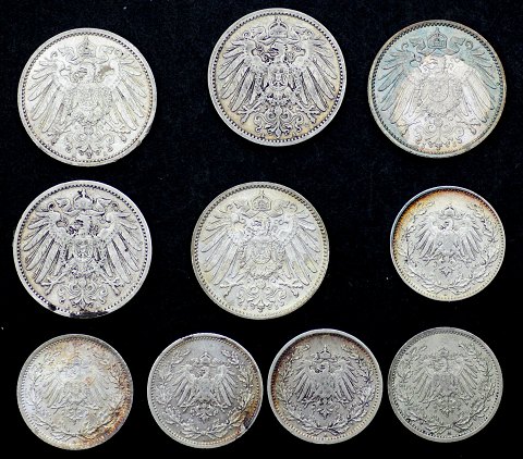 Tyskland, ½ og 1 Mark 1901 ~ 1915 sølv (10)