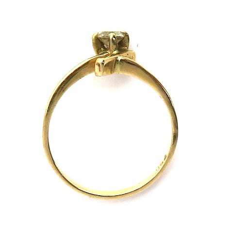 Cross-over ring af 18 kt. guld, prydet med diamant på 0,17 ct. Ring Str. 49½, samlet vægt ca. 2,5 gr.