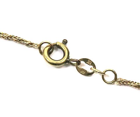 Halssmykke af 10 kt. guld med vedhæng i nuggetform. Snoet kæde L. 50 cm., samlet vægt ca. 5 gr.