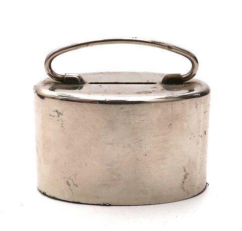 Sparebøsse af forkromet metal *Sparekassen for Ebeltoft*