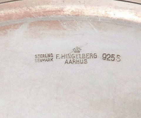 Frantz Hingelberg fad med dobbeltriflet kant, diameter 28 cm., vægt ca. 595 gr. Frantz Hingelberg sølvsmedje, Aarhus omkring 1960.