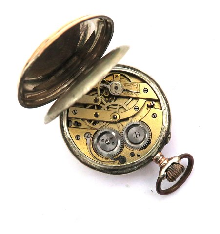 Schweizisk "Cilindre Remontoire" lommeur af sølv med hvid emlajeskive, romertal, minutskala og separat sekundviser. Urkasse diameter 45 mm.