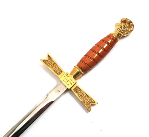 Frimurersværd fra 1950'erne med sværdknop i form af ridderhjelm