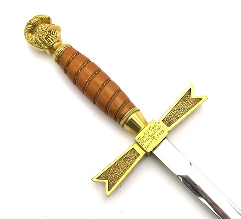 Frimurersværd fra 1950'erne med sværdknop i form af ridderhjelm