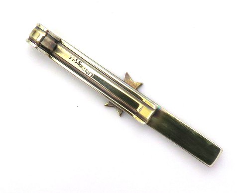 Frimurer scarfnål af sterling sølv med rød/hvid St. Georg kors, belagt med rød/hvid emalje. L. 6,5 cm., vægt ca. 8 gr.
