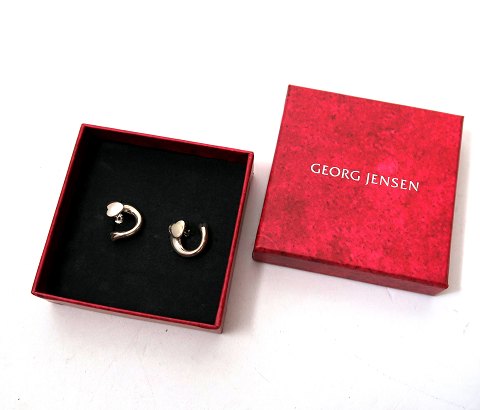 Par Georg Jensen ørestikker af sterling sølv i form af "Mercy" bøjle, afsluttet med hjerte. Ørestikker 15 x 15 mm., samlet vægt ca. 8,5 gr.