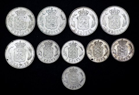 Christian X, 1 og 2 kr. 1915 og 1916 sølv (10)