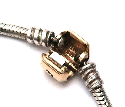 Pandora armlænke af sterling sølv med lås af 14 kt. guld. Armlænke vejer ca. 14 gr., L. 20 cm., låsen af guld vejr ca. 3 gr.