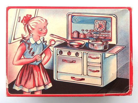 Børnekomfur af blik fra 1950'erne - nyt i originalæsken