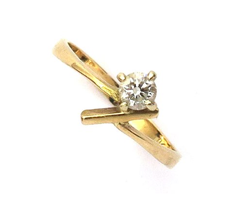 Cross-over ring af 18 kt. guld, prydet med diamant på 0,17 ct. Ring Str. 49½, samlet vægt ca. 2,5 gr.