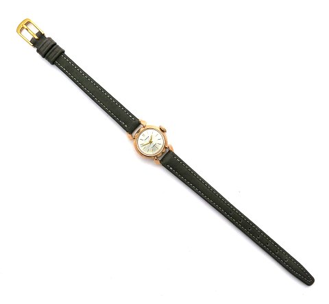 Chaika, russisk damearmbåndsur, ref. nr. 2225 i urkasse og med bagkapsel af gulddoublé. Blank metalskive med stregindikation. Manuelt, mekanisk optræksværk. Urkasse diameter 17 mm. Læderrem med forgyldt spænde.