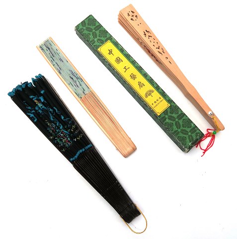 Orientalske vifter af træ, kunststof stof og rispapir (3)