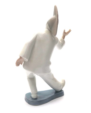 Bing & Grøndahl figur #2353 i form af optrædende Pjerrot. H. 23 cm., 1. sortering. Design Ebbe Sadolin / Svend Jespersen