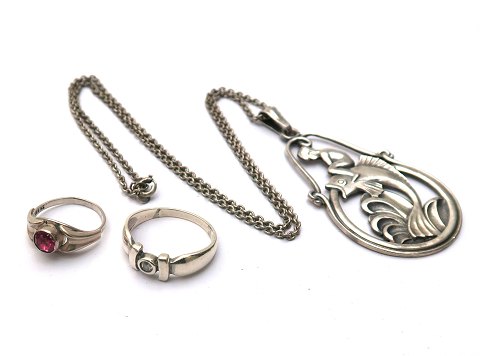 Cohr halssmyke og to ringe af sølv og sterling sølv (3)