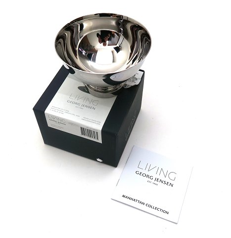 Georg Jensen Manhattan Collection skål af blank poleret stål på rund fod *Living*, H. 7,4 cm., diameter 12 cm.