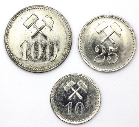 Grønlandsk Minedrift, komplet sæt 1911 - 10, 25 og 100 øre