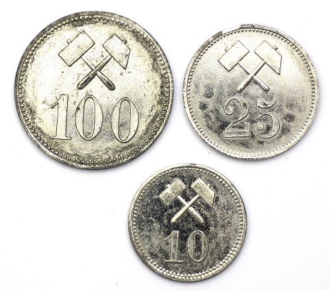 Grønlandsk Minedrift, komplet sæt 1911 - 10, 25 og 100 øre