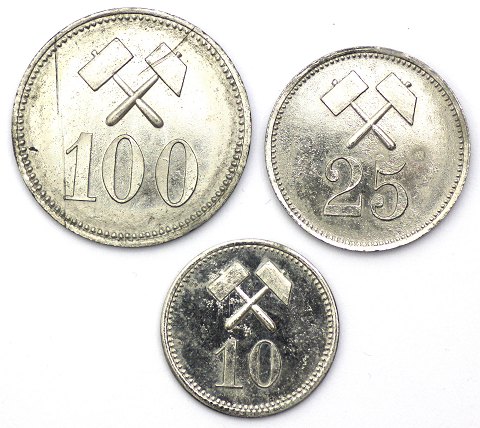 Grønlandsk Minedrift, komplet sæt 1911 - 10, 25 og 100 øre