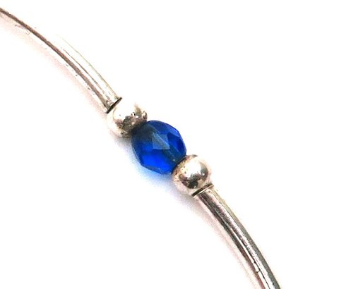 Halssmykke af sterling sølv med facetslebne, safirblå sten