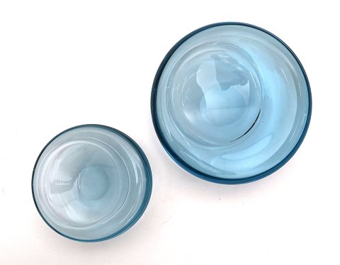 Holmegaard, to blå tonede skåle af Per Lytken, diameter 14 og 19 cm.