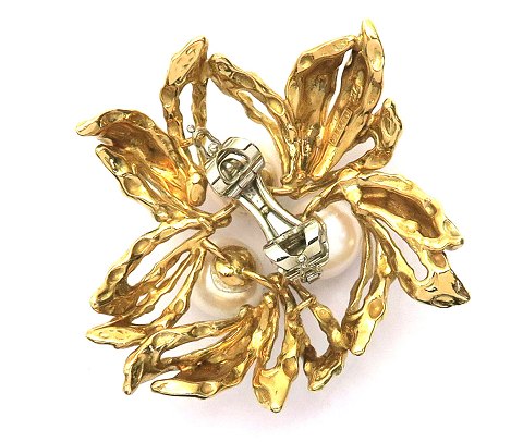 Lås til perlekæde af 18 kt. guld, prydet med tre 10½ mm. perler