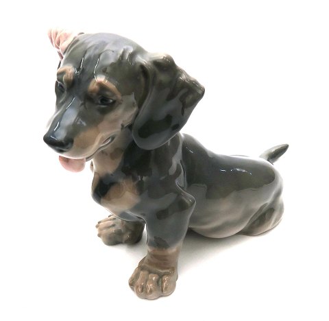 Royal Copenhagen underglasur figur #856 i form af gravhund,, 1. sortering, H. 20 cm. Design Lauritz Jensen.