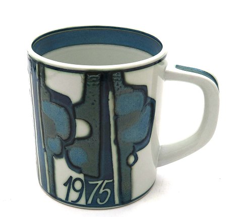 Royal Copenhagen, stor årskrus 1975 af fajance, H. 11,5 cm., bund med ilagt Arne Mikkelsen plaquette af sterling sølv.