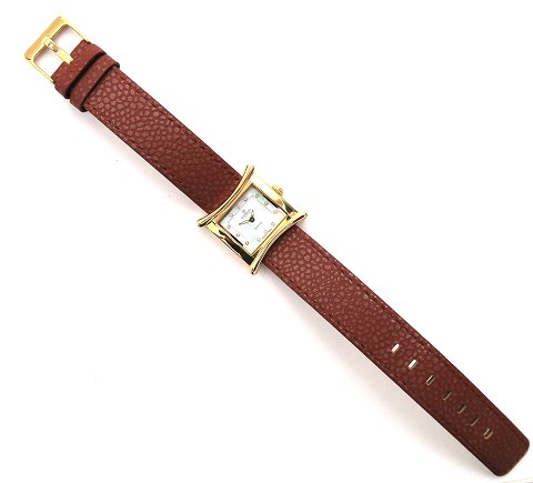Christina London, damearmbåndsur, ref nr. G113089 med skive af perlemor bag mineralglas. Punktindikation prydet med 12 diamanter Top Wesselton vvs. Quartzværk. Forgyldt urkasse 27 x 25 mm.