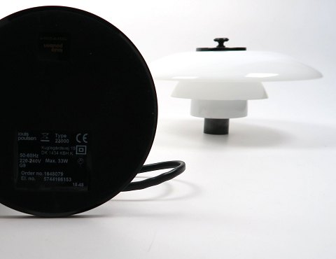 Poul Henningsen, PH 2/1 bordlampe med sortforkromet stamme og 3 skærme af opalineglas. Overskærm diameter 20 cm. H. 35,5 cm.