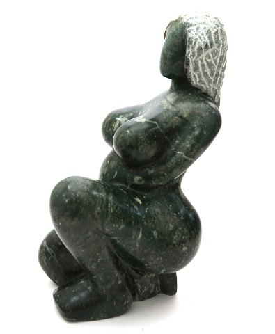 Atwell Chipiri (Zimbabwe): Yppig badepige af serpentin shona sten, H. 40 cm., vægt 13,3 kg.