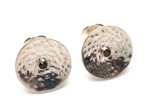 Par manchetknapper af hamret sterling sølv, prydet med onyx