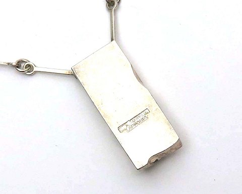 Lapponia halskæde med aflange led, prydet med fast, profileret vedhæng af sterling sølv. Kæde L. 42 cm., vedhæng L. 30 mm., samlet vægt ca. 14 gr.
