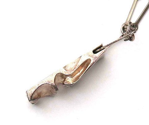 Lapponia halskæde med aflange led, prydet med fast, profileret vedhæng af sterling sølv. Kæde L. 42 cm., vedhæng L. 30 mm., samlet vægt ca. 14 gr.
