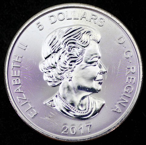 Canada, 5 Dollars 2016 finsølv *Bullion*, diameter 38 mm, vægt 31,1 gr. (.999).