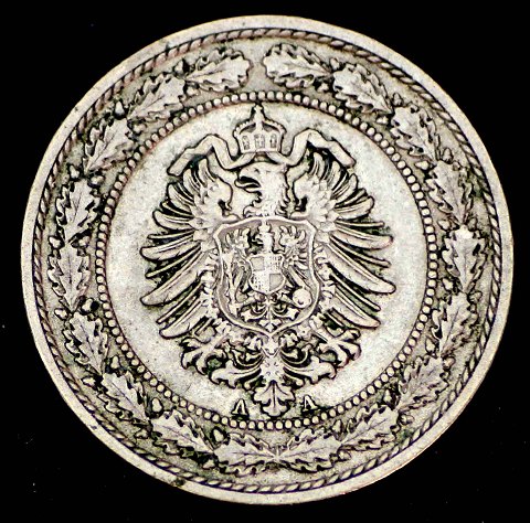 Tyskland, 20 Pfennig 1887 cn, diameter 23,1 mm., vægt 6,25 gr.