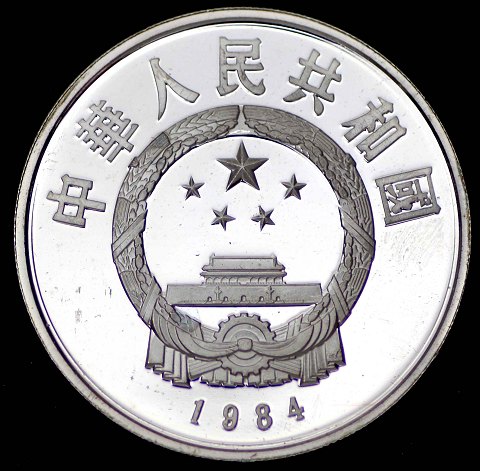 Kina, 5 Yuan 1984 sølv - Bullion. Diameter 36 mm., vægt 22,2 gr. (.900).