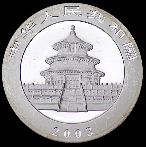 Kina, 10 Yuan 2003 finsølv - Bullion. Diameter 40 mm., vægt 31,1 gr. (.999).